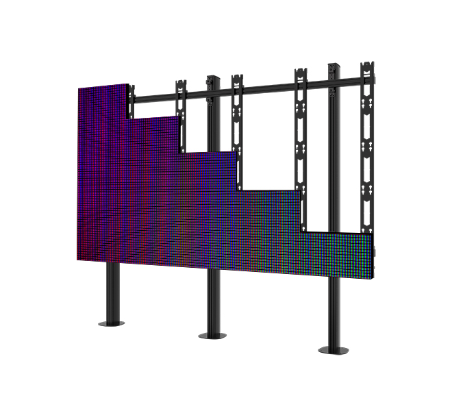Tối giản thao tác thi công, giúp kỹ sư treo cabinet nhanh và an toàn, đồng thời hỗ trợ tinh chỉnh chiều cao và chiều sâu, đảm bảo độ phẳng và liền mạch của màn hình ghép. -